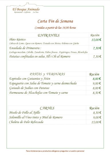 Gastronomía Rural, Almuerzos, Comidas, Menús, Eventos
