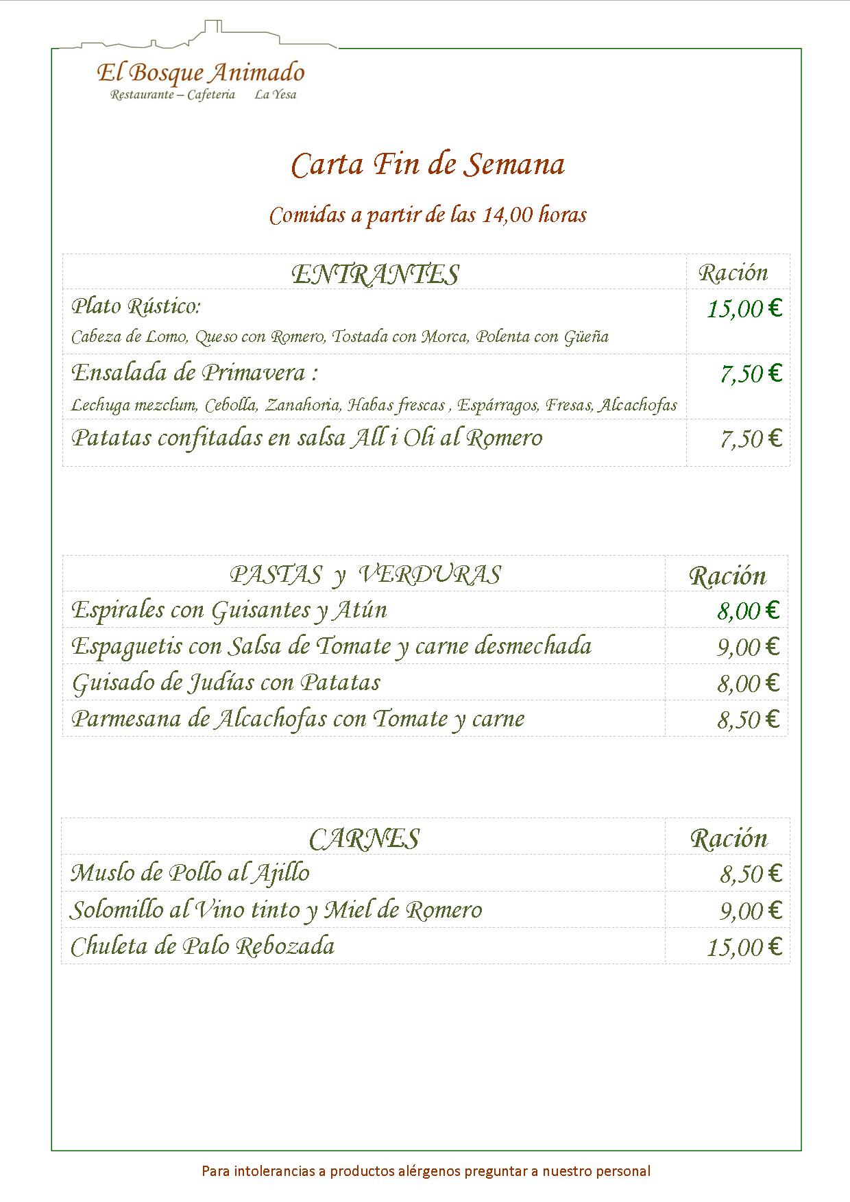 Gastronomía Rural, Almuerzos, Comidas, Menús, Eventos